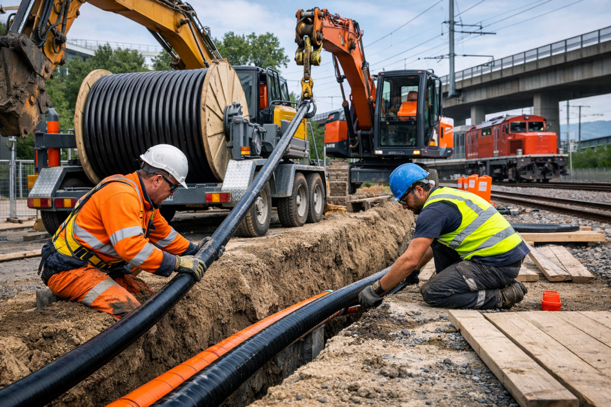 Nous assurons la pose de câbles d’énergie et de télécommunications jusqu’à 2 tonnes sur l’ensemble des infrastructures, qu’elles soient routières, ferroviaires ou industrielles. Forts d’une solide expérience en génie civil, nous intervenons aussi bien sur des ouvrages neufs que sur des infrastructures existantes, en tenant compte des contraintes techniques, environnementales et réglementaires propres à chaque projet.
